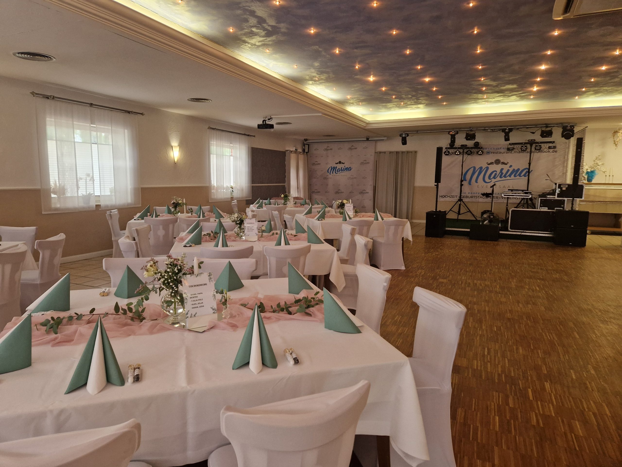Im Eventsaal Marina finden Sie den idealen Rahmen für unvergessliche Hochzeiten – mit festlicher Atmosphäre, edler Ausstattung und liebevoller Dekoration bis ins kleinste Detail.